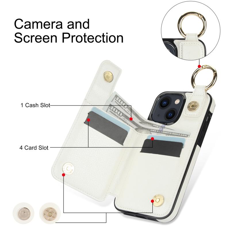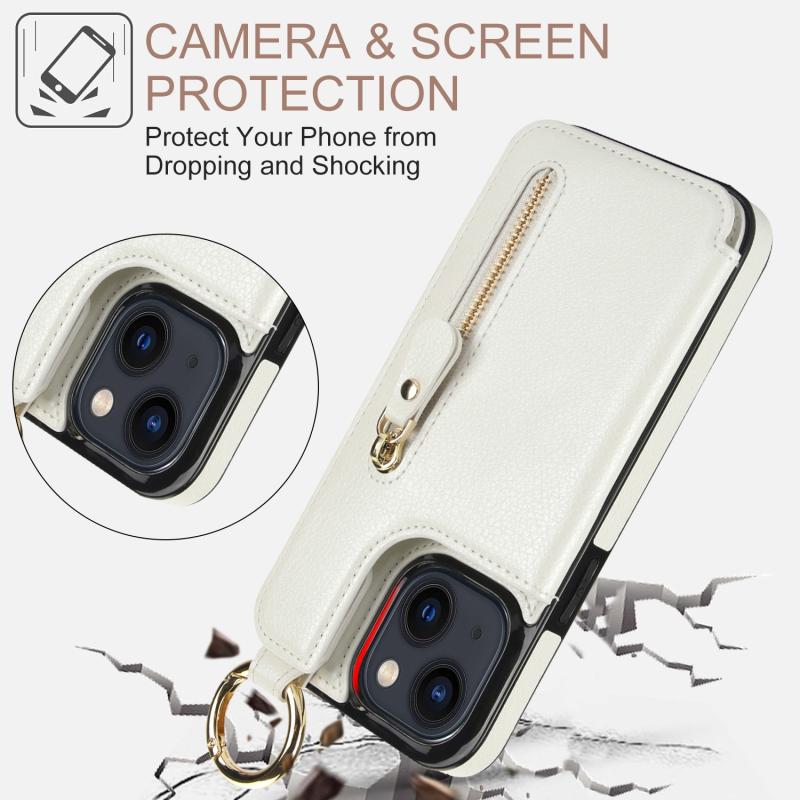 For iPhone 13 Litchi Texture Zipper Double Buckle Card Bag Phone Case(White)
