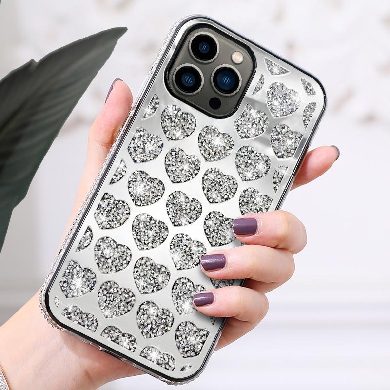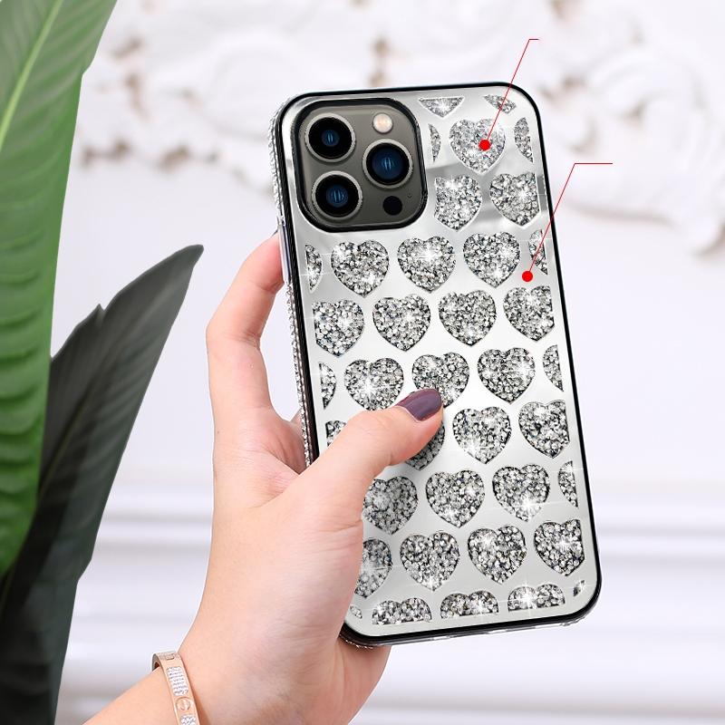 For iPhone 13 Love Hearts Diamond Mirror TPU Phone Case(Silver)