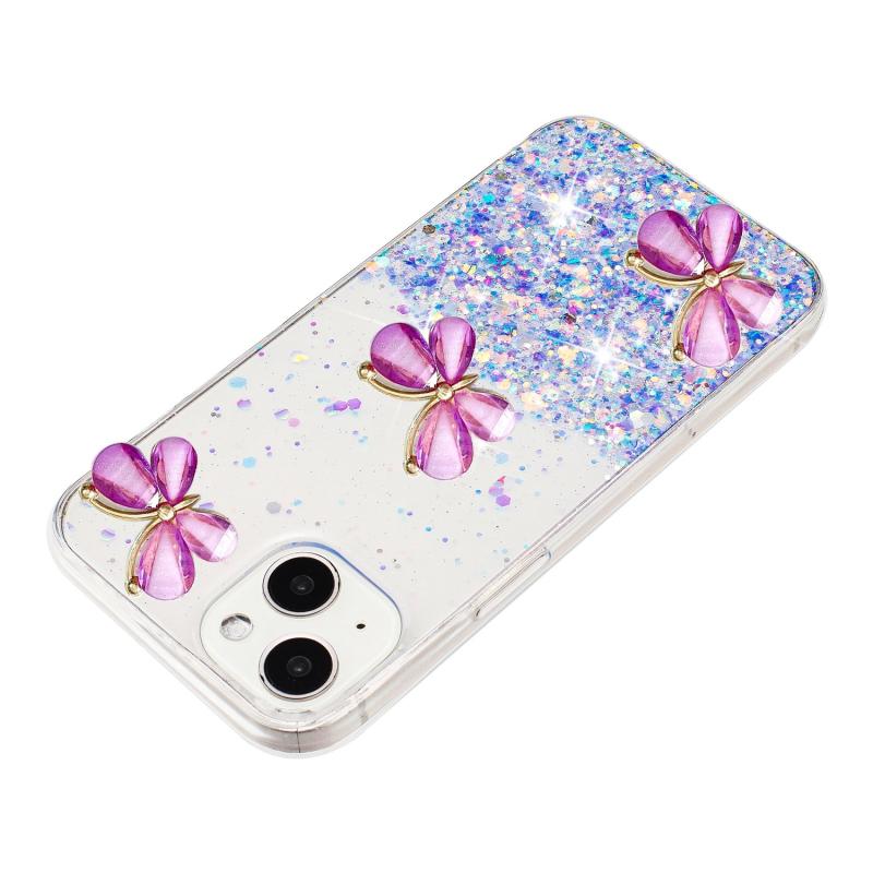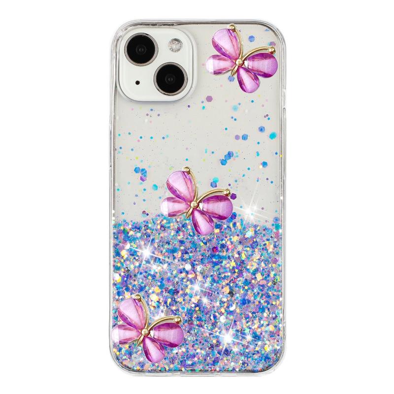 For iPhone 13 Luminous Starry Sky Glitter Butterfly TPU Phone Case(Purple)