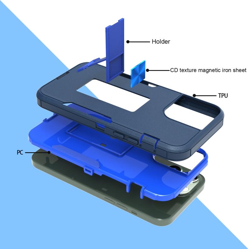 For iPhone 13 Magnetic Holder Phone Case(Sapphire Blue + Dark Blue)