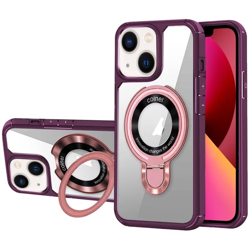 For iPhone 13 MagSafe Acrylic Hybrid TPU Phone Case with Holder(Wine Red)