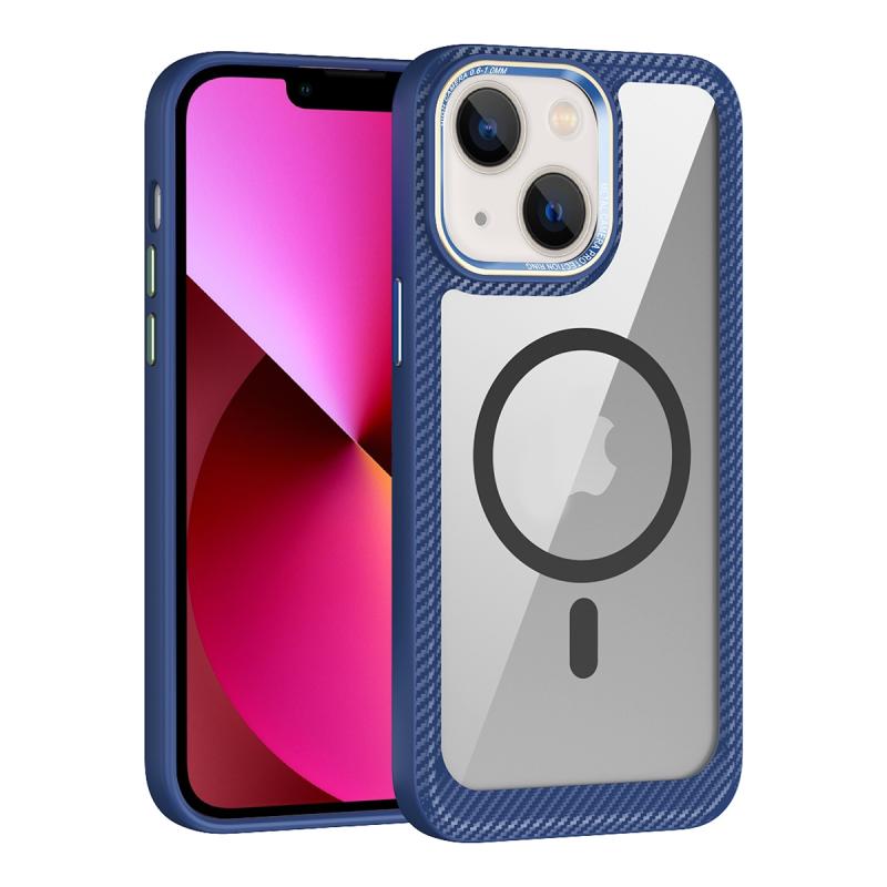 For iPhone 13 MagSafe Carbon Fiber Transparent Back Panel Phone Case(Blue)