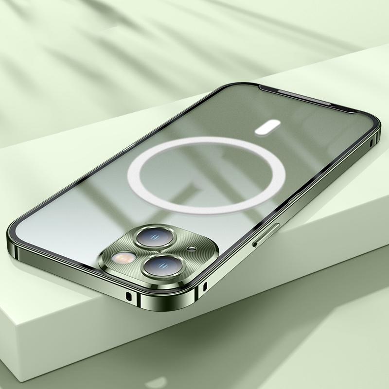 For iPhone 13 MagSafe Frosted Metal Phone Case(Green)