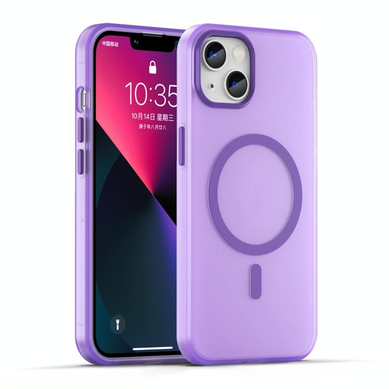 For iPhone 13 MagSafe Frosted Translucent TPU + PC Full Coverage Phone Case(Dark Purple)