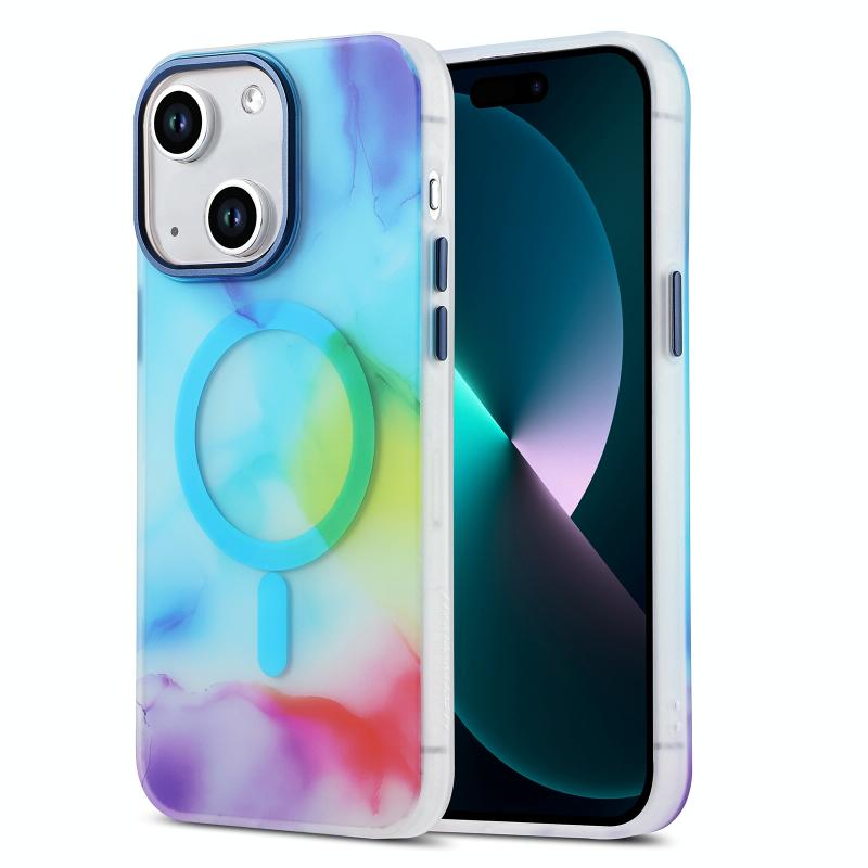 For iPhone 13 MagSafe Magnetic Ink Phone Case(Blue Colorful)