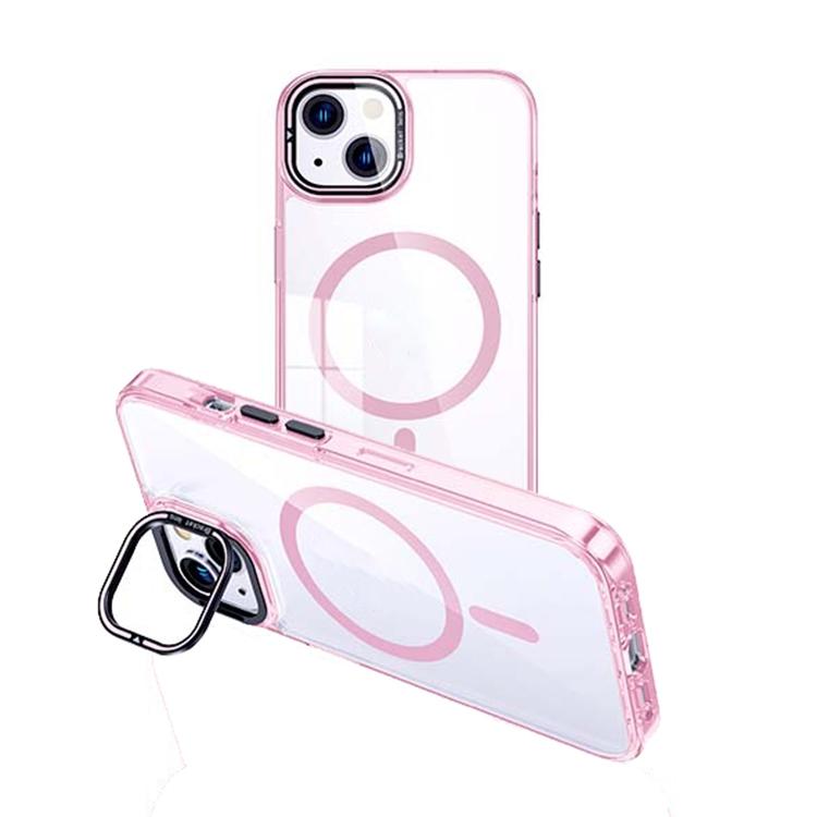 For iPhone 13 MagSafe Magnetic Invisible Holder Transparent Phone Case(Pink)
