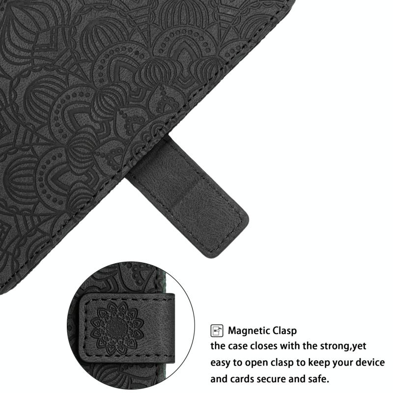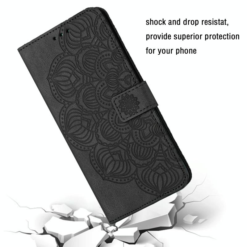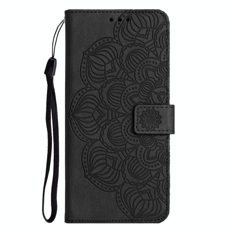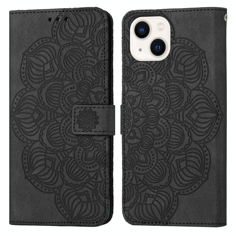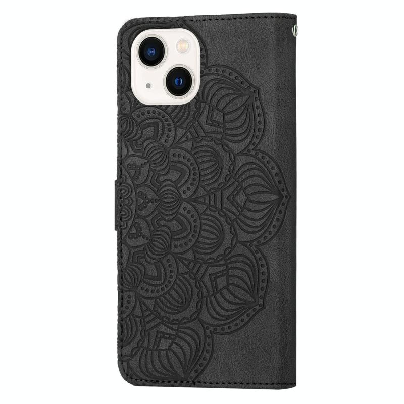 For iPhone 13 Mandala Embossed Flip Leather Phone Case(Black)