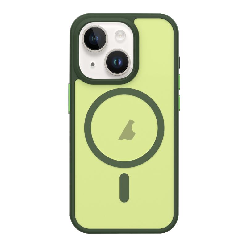 For iPhone 13 Metal Button Skin Feel Matte MagSafe Shockproof Phone Case(Green)