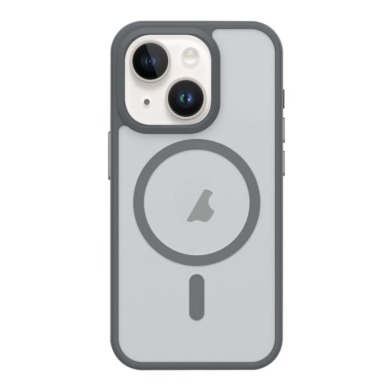 For iPhone 13 Metal Button Skin Feel Matte MagSafe Shockproof Phone Case(Grey)