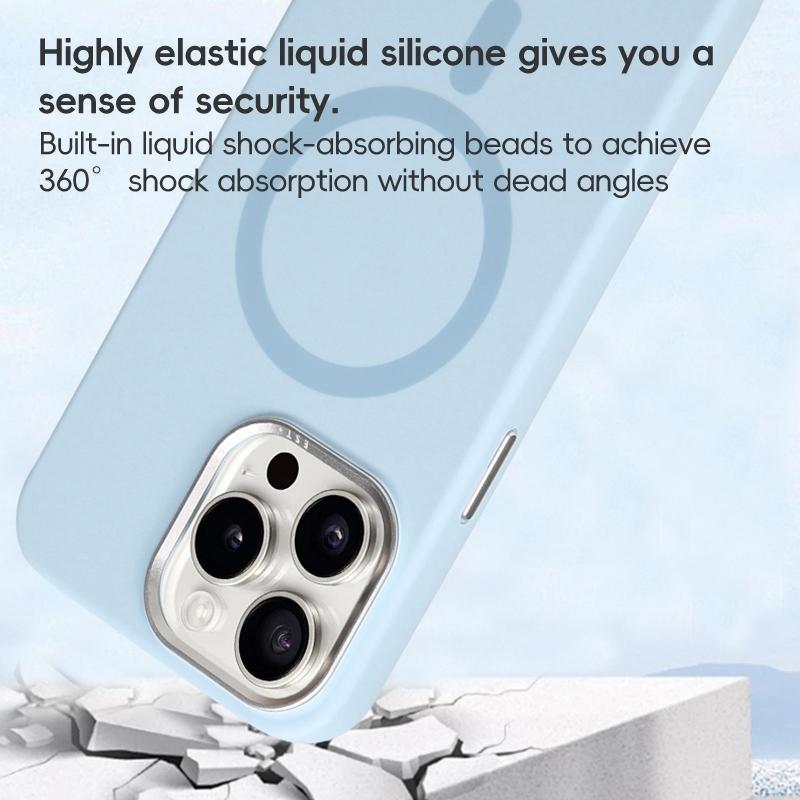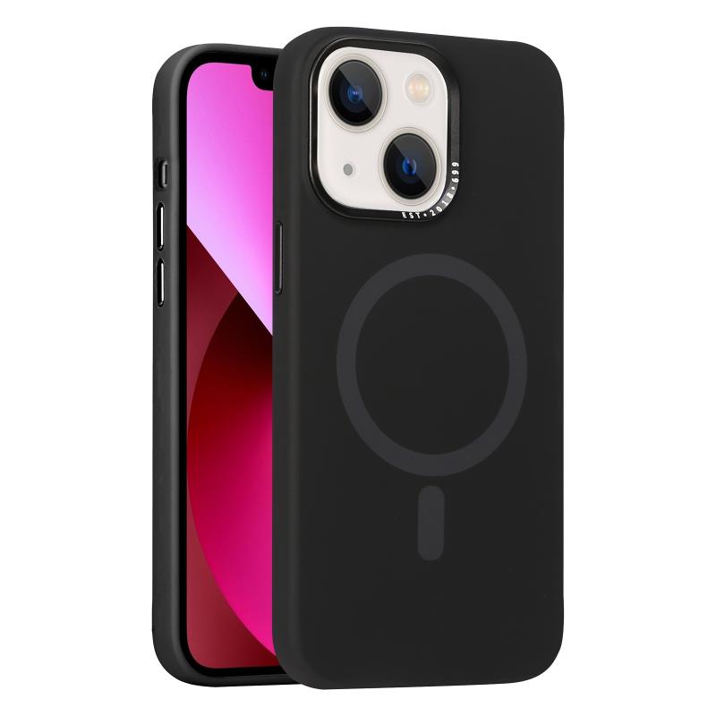 For iPhone 13 Metal Lens Frame Liquid Silicone MagSafe Phone Case(Black)