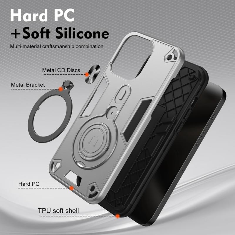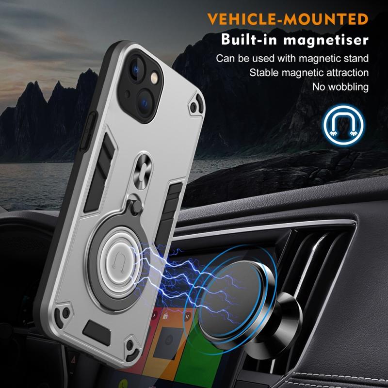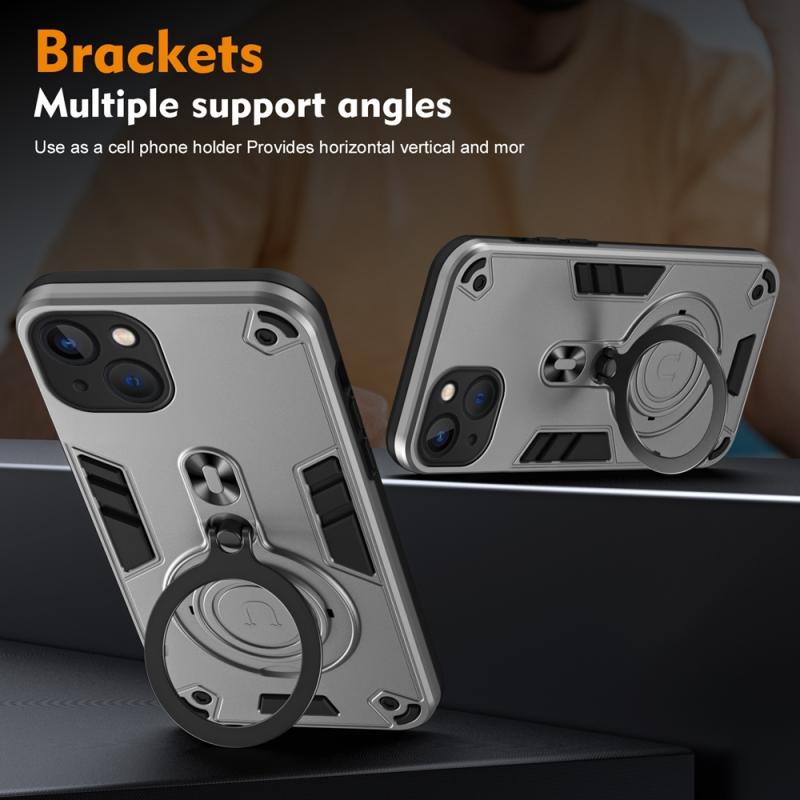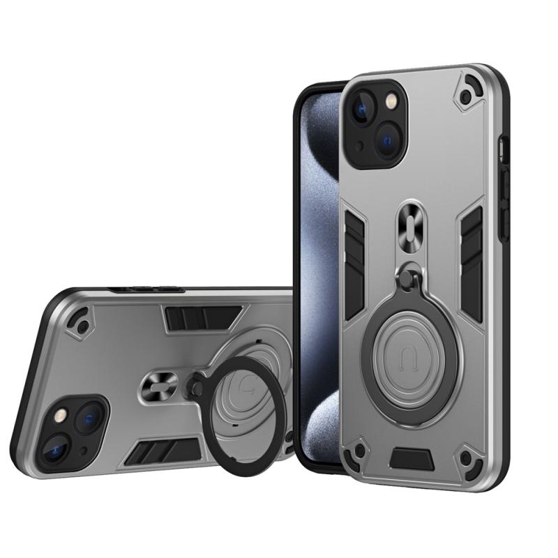 For iPhone 13 Metal Ring 360 Degree Rotating Holder PC Hybrid TPU Phone Case(Silver Grey)