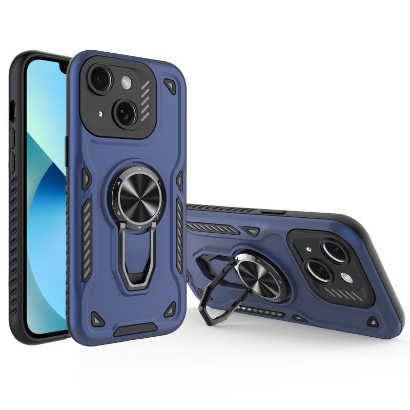 For iPhone 13 Metal Rotating Bracket TPU + PC Magnetic Phone Case(Dark Blue)