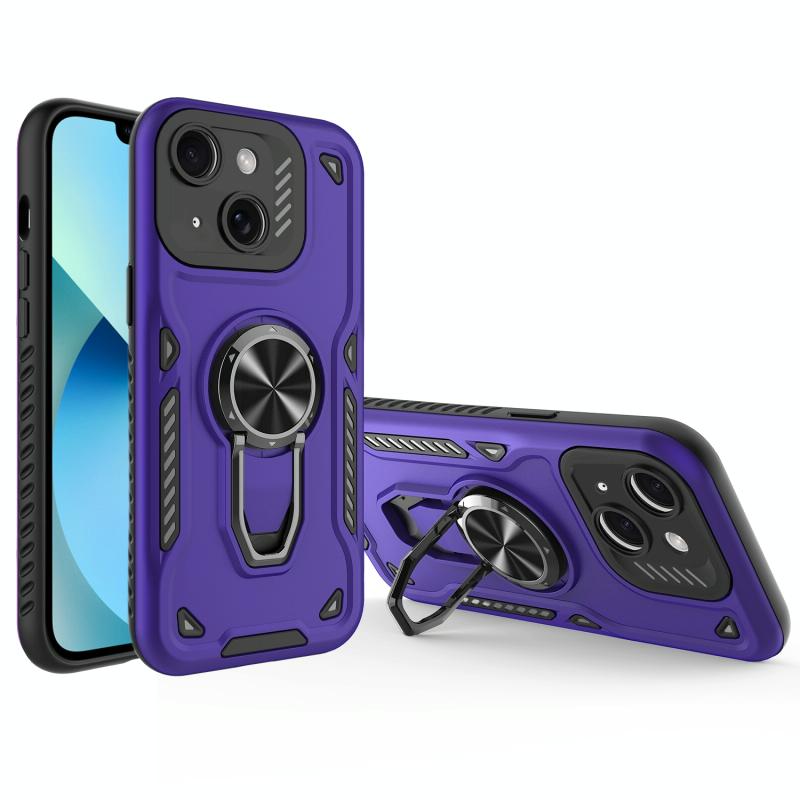 For iPhone 13 Metal Rotating Bracket TPU + PC Magnetic Phone Case(Dark Purple)
