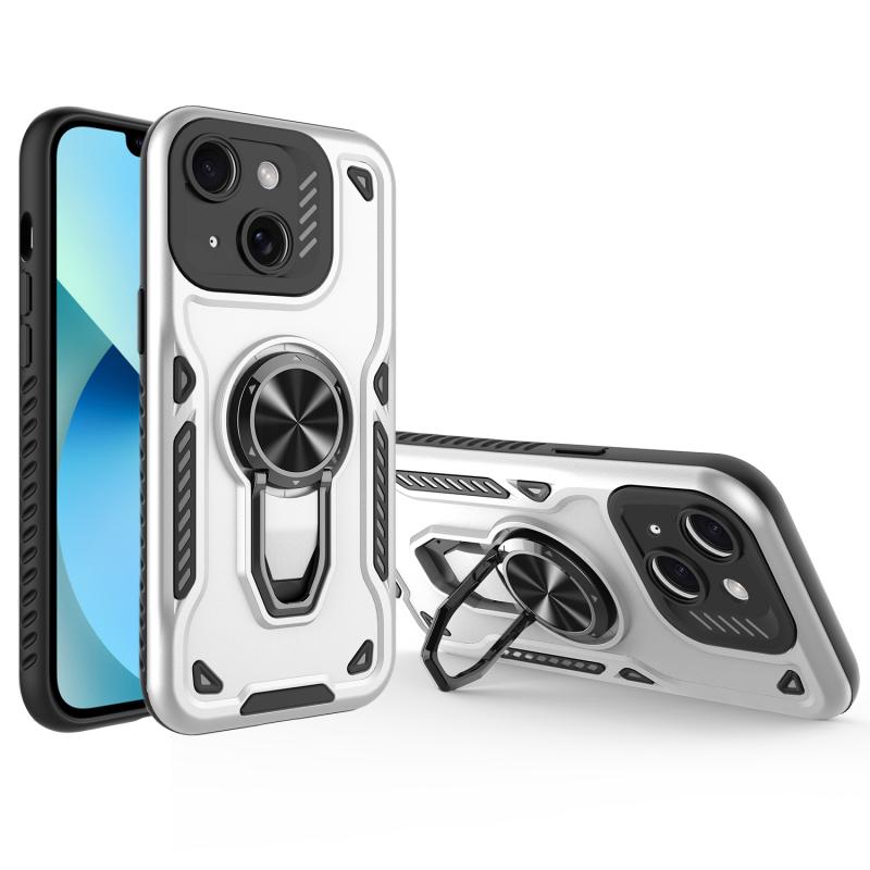 For iPhone 13 Metal Rotating Bracket TPU + PC Magnetic Phone Case(White)