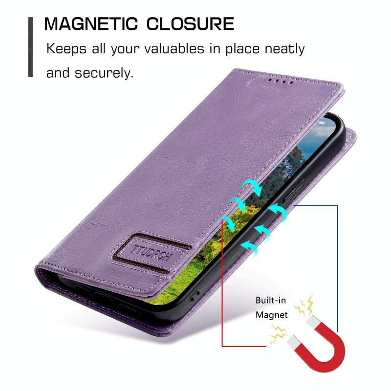 For iPhone 13 mini TTUDRCH RFID Retro Texture Magnetic Leather Phone Case(Purple)