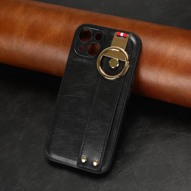 For iPhone 13 mini Wristband Leather Back Phone Case(Black)