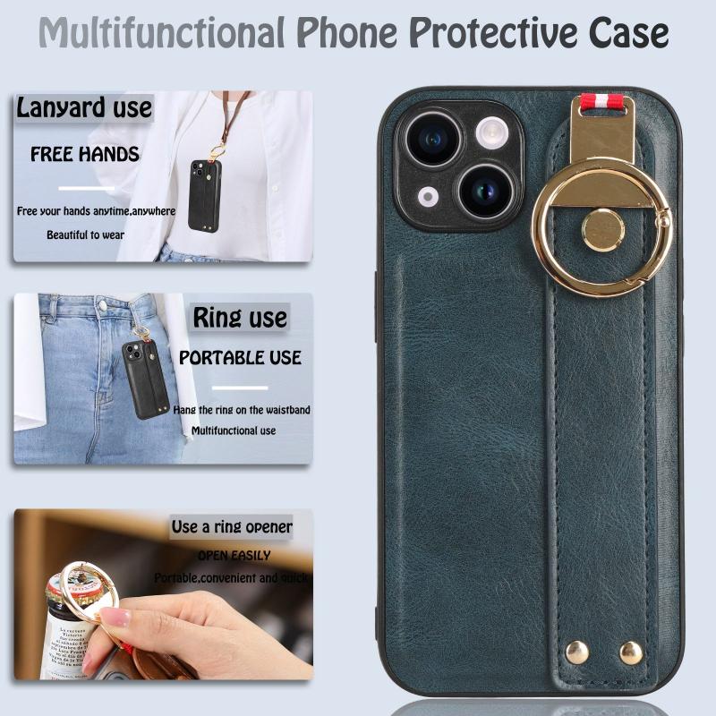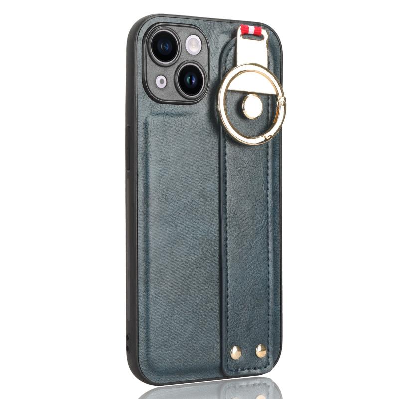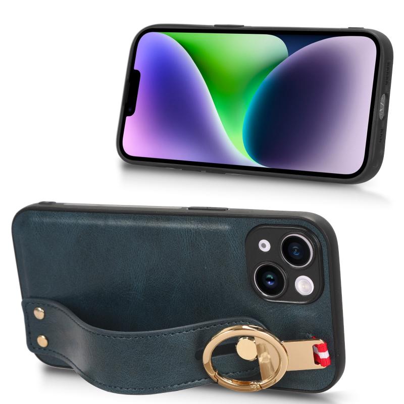 For iPhone 13 mini Wristband Leather Back Phone Case(Blue)