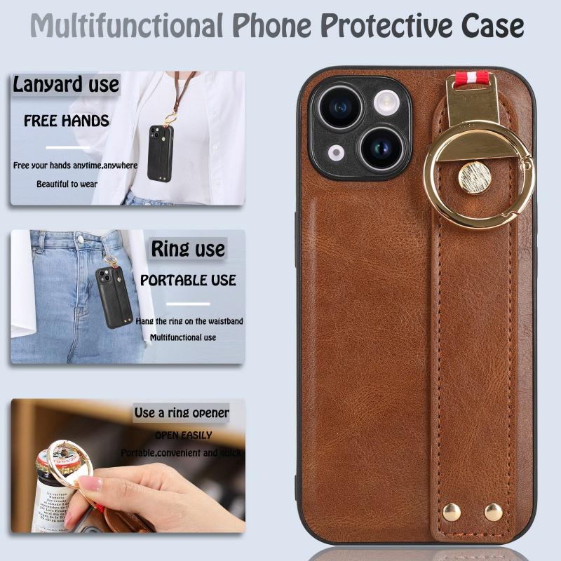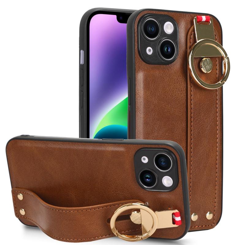 For iPhone 13 mini Wristband Leather Back Phone Case(Brown)