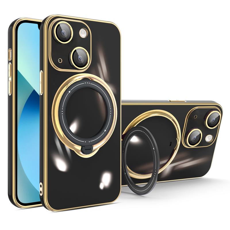 For iPhone 13 Multifunction Electroplating MagSafe Holder Phone Case(Black)