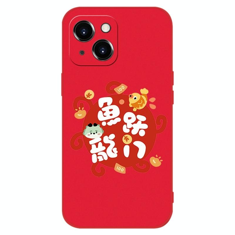 For iPhone 13 New Year Red Silicone Shockproof Phone Case(Fish Dragon Gate)