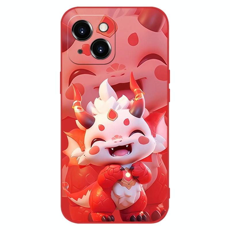 For iPhone 13 New Year Red Silicone Shockproof Phone Case(Happy Dragon Doll)
