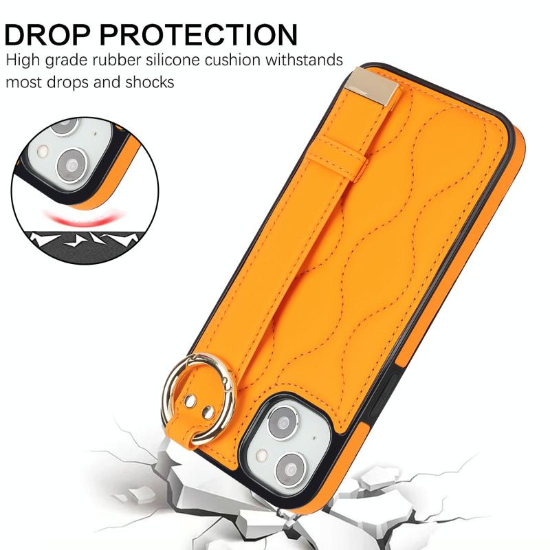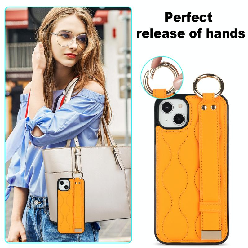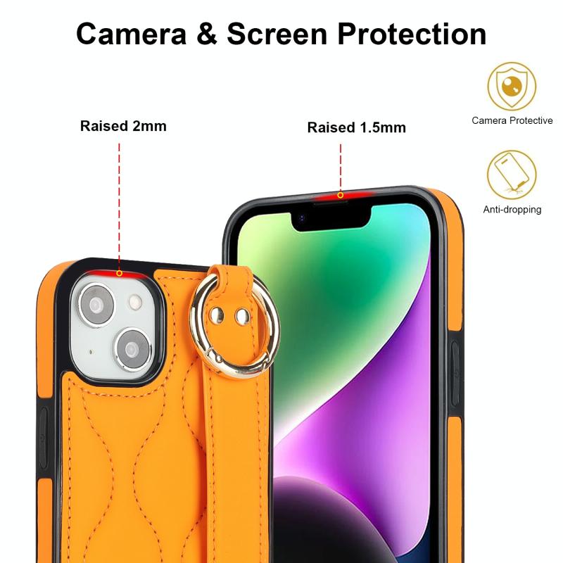 For iPhone 13 Non-slip Full Coverage Ring PU Phone Case with Wristband(Orange)