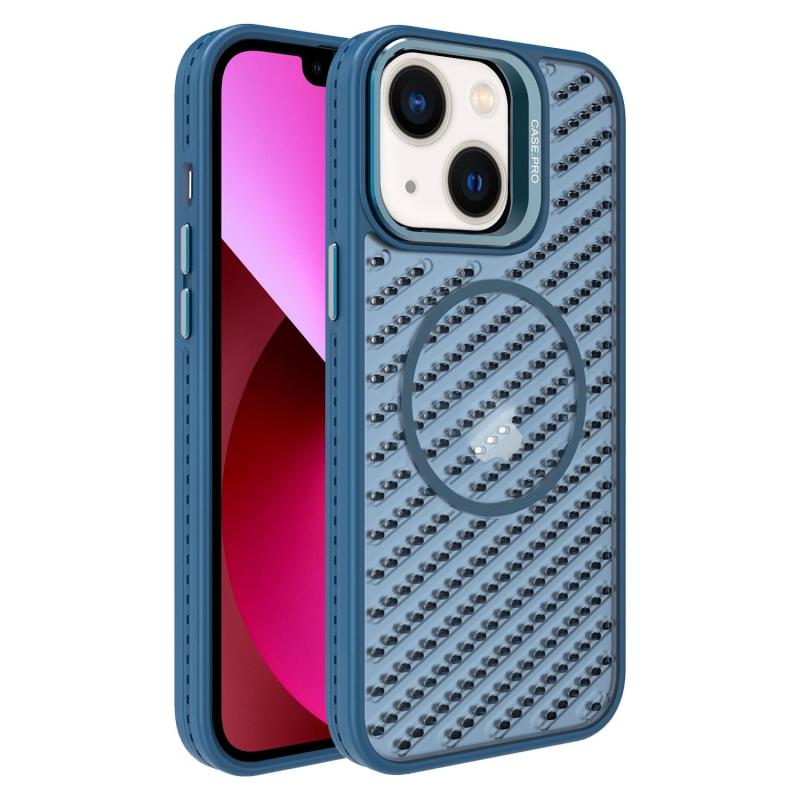 For iPhone 13 O-Shape Hollow Cooling Lens Holder MagSafe Phone Case(Blue)