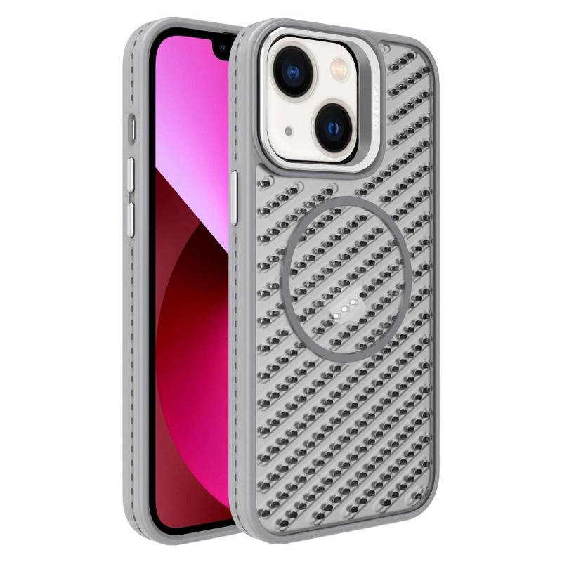 For iPhone 13 O-Shape Hollow Cooling Lens Holder MagSafe Phone Case(Grey)