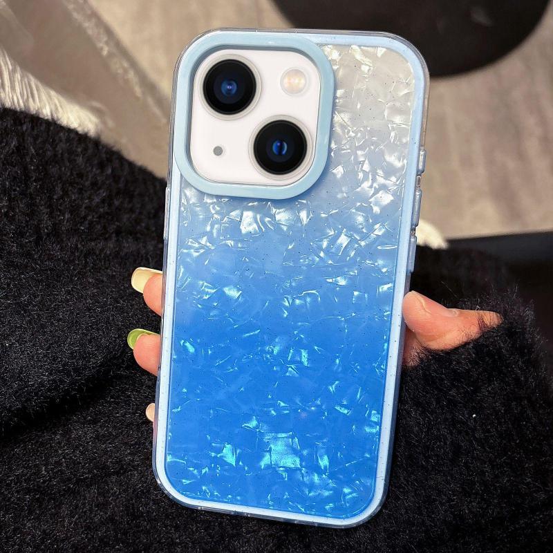 For iPhone 13 PC Lens Ring Gradient Shell Texture 3 in 1 Phone Case(Blue)