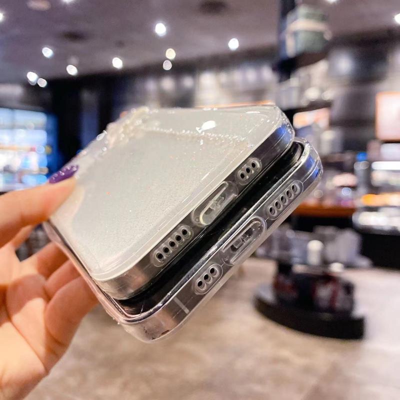 For iPhone 13 Pearl Bow Glitter Epoxy TPU Phone Case(Three Knots)