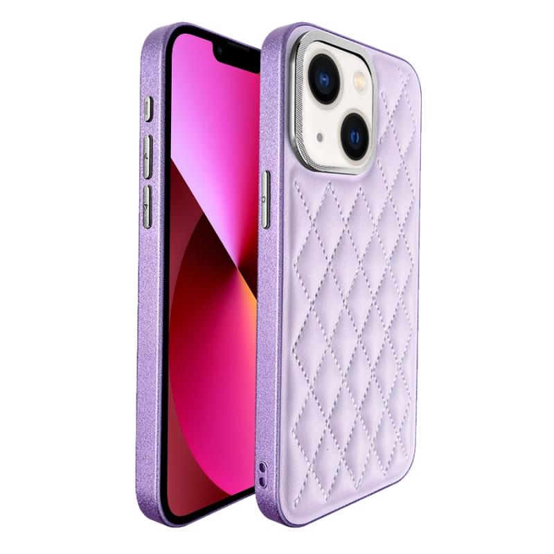 For iPhone 13 Plaid Series 9D Electroplated Phone Case(Purple)