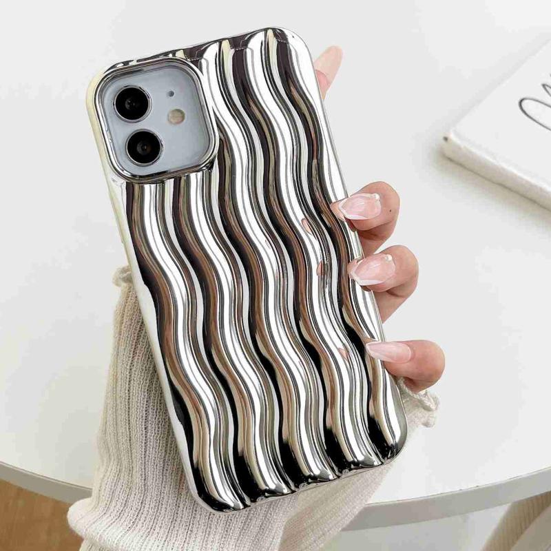 For iPhone 13 Plating 3D Water Wave Texture Phone Case(Silver)
