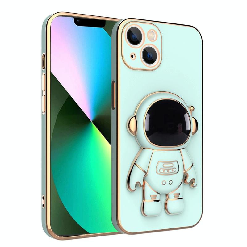 For iPhone 13 Plating Astronaut Holder Phone Case(Matcha Green)
