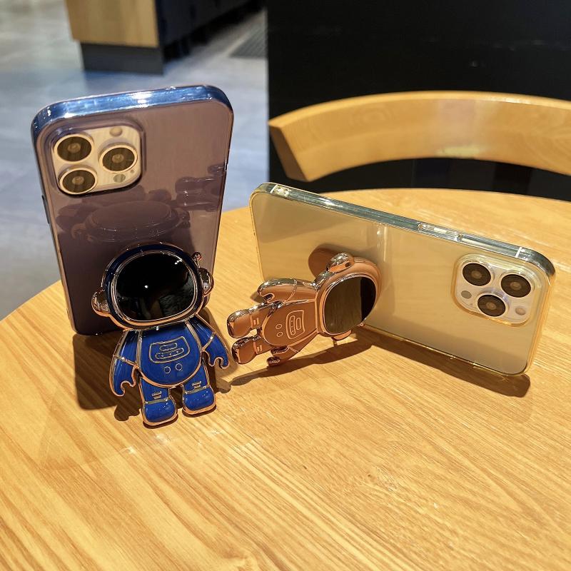 For iPhone 13 Plating Astronaut Holder TPU Phone Case(Transparent White)