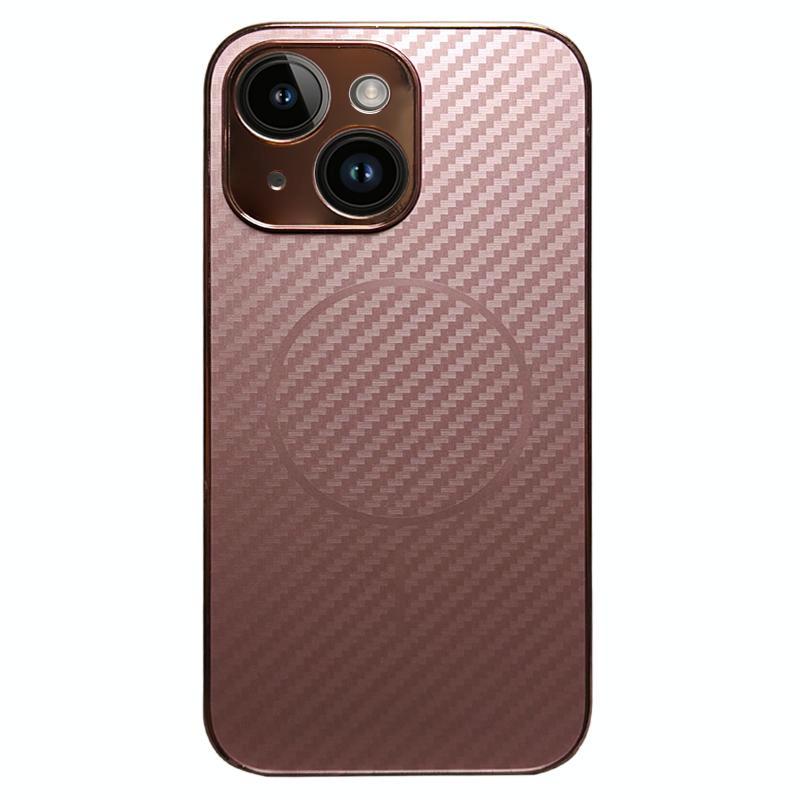 For iPhone 13 Plating Carbon Fiber MagSafe Full Coverage Phone Case(Pink)