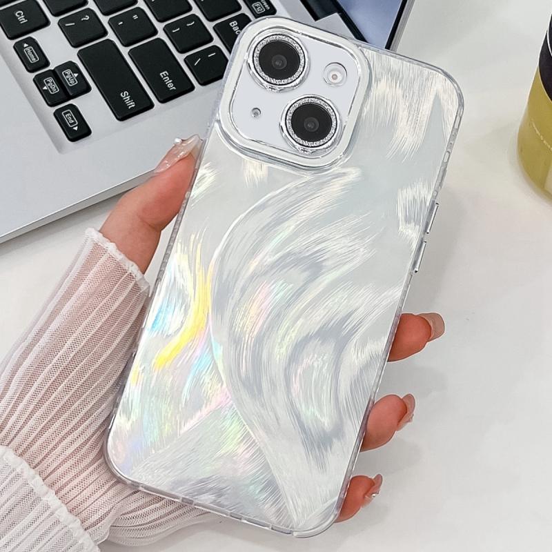 For iPhone 13 Plating Glitter Texture TPU Phone Case with Lens Film(White Feather Yarn)