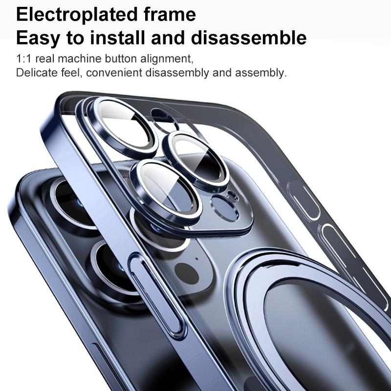 For iPhone 13 Plating PC 360 Ring Holder Magsafe Phone Case(Clear Purple)