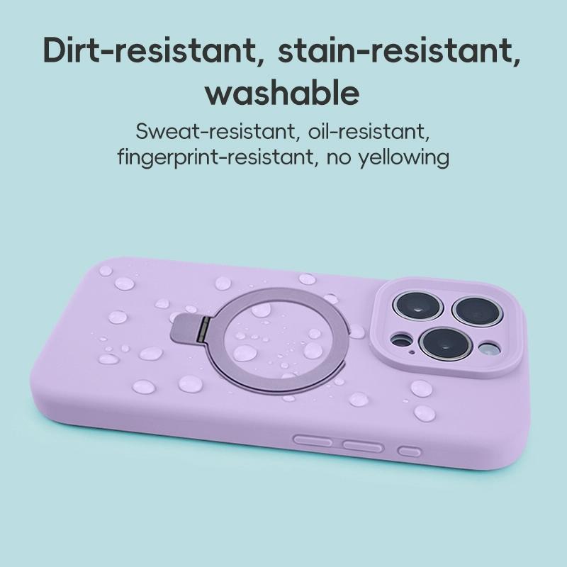 For iPhone 13 Precision Hole Liquid Silicone MagSafe Metal Ring Holder Phone Case(Purple)