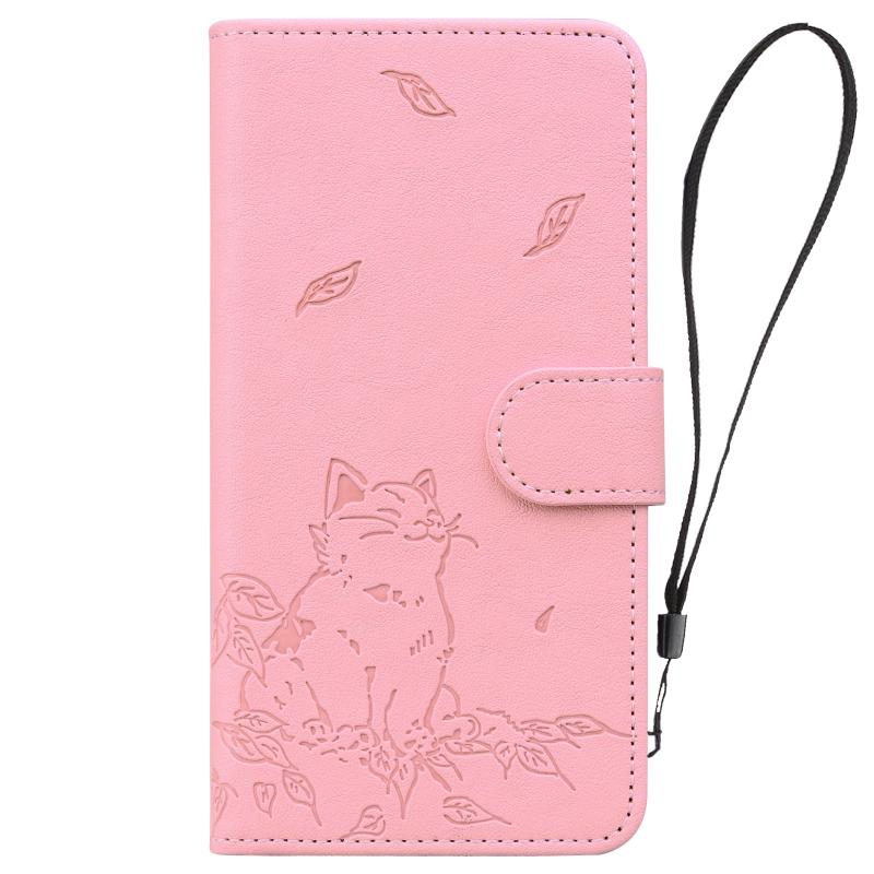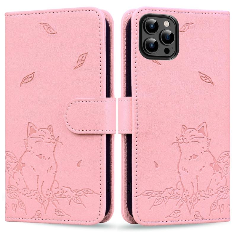 For iPhone 13 Pro Cute Cat Embossed Leather Phone Case(Pink)