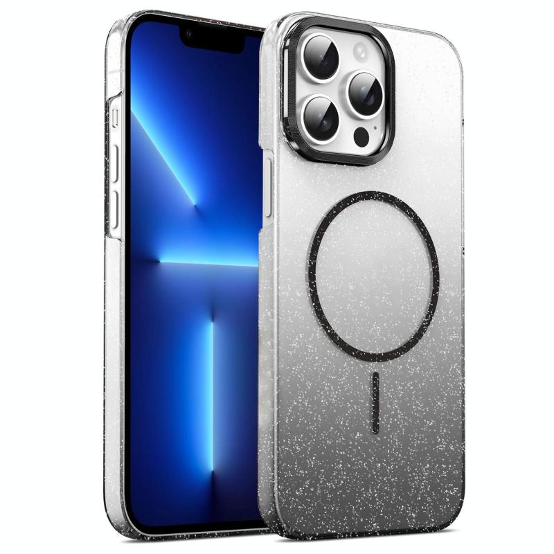 For iPhone 13 Pro Gold Diamond Glitter Gradient MagSafe Shockproof Phone Case(Black)