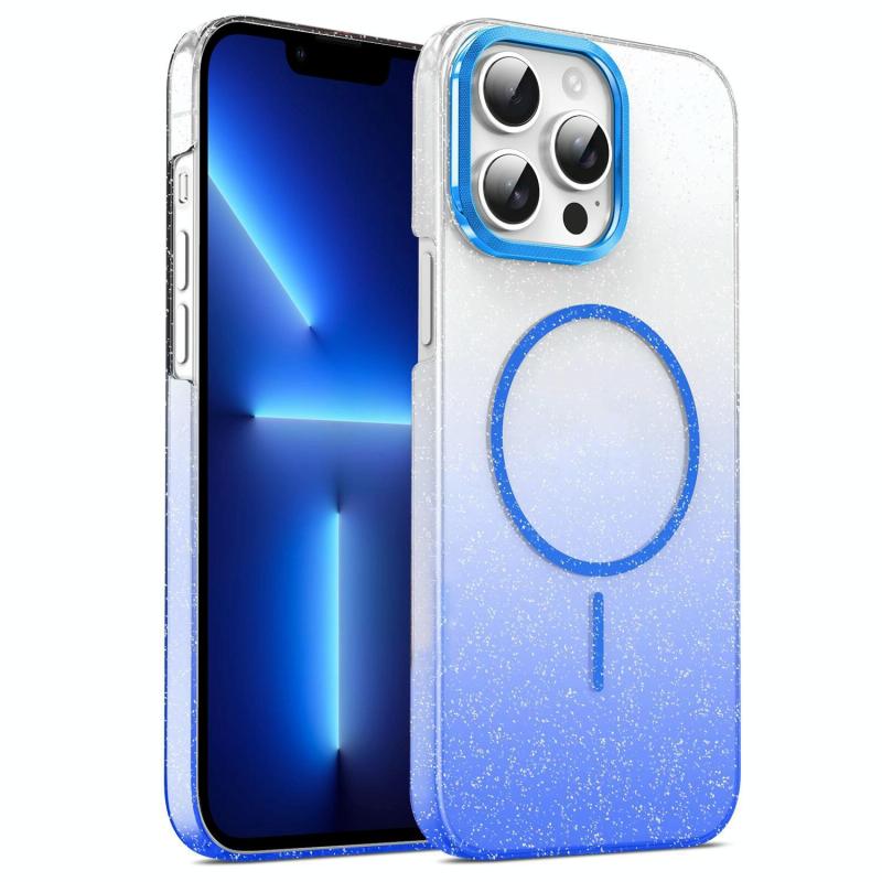 For iPhone 13 Pro Gold Diamond Glitter Gradient MagSafe Shockproof Phone Case(Blue)