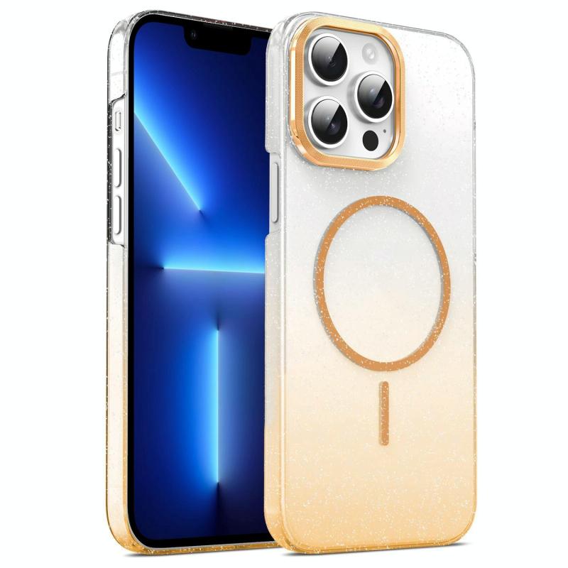 For iPhone 13 Pro Gold Diamond Glitter Gradient MagSafe Shockproof Phone Case(Gold)