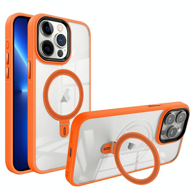 For iPhone 13 Pro Max Shield Armor MagSafe Holder Phone Case(Orange)
