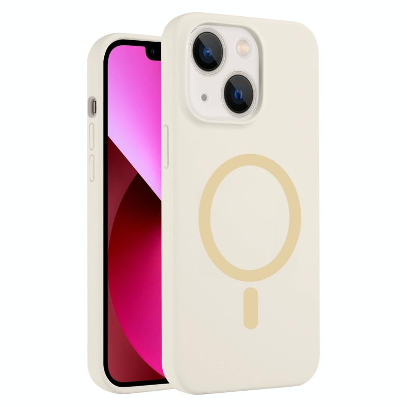 For iPhone 13 Pure Color Liquid Silicone MagSafe Phone Case(Antique White)