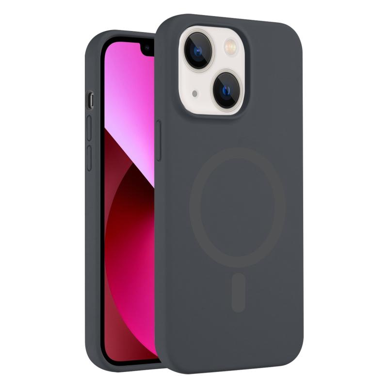 For iPhone 13 Pure Color Liquid Silicone MagSafe Phone Case(Charcoal Gray)
