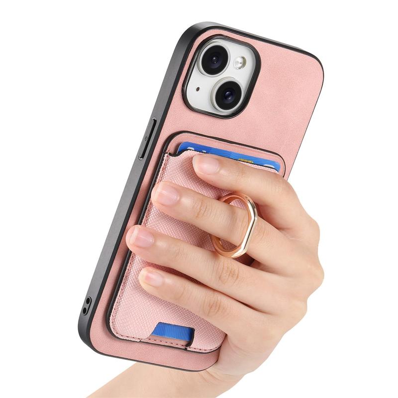 For iPhone 13 Retro Cross Leather Card Bag MagSafe Phone Case(Pink)