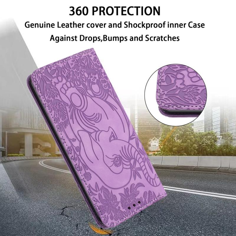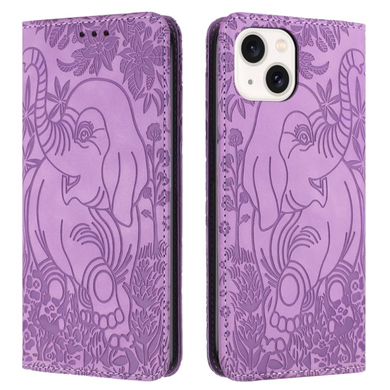 For iPhone 13 Retro Elephant Embossed Leather Phone Case(Purple)