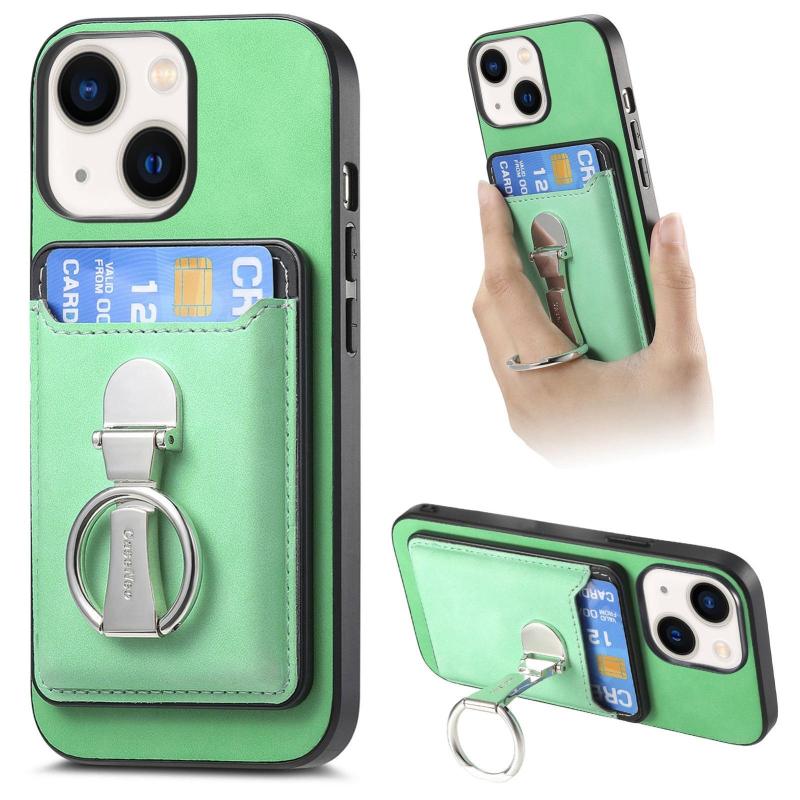 For iPhone 13 Retro Folding Ring Holder Card Bag MagSafe Phone Case(Green)