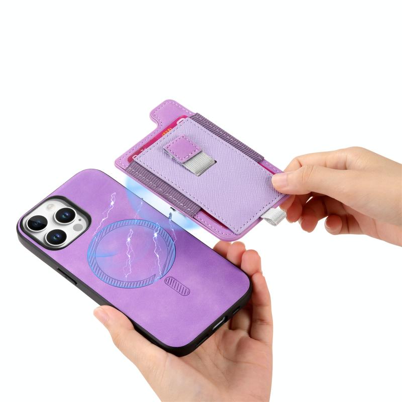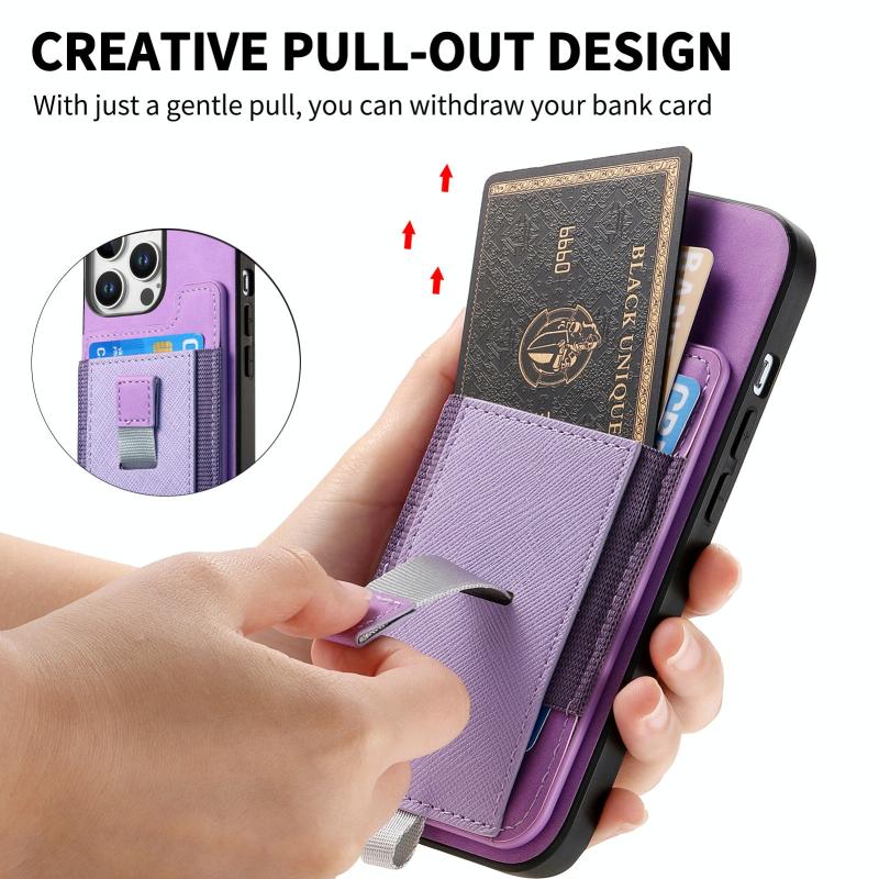 For iPhone 13 Retro Magsafe Cross Leather Pull-Out Card Bag Back Phone Case(Purple)