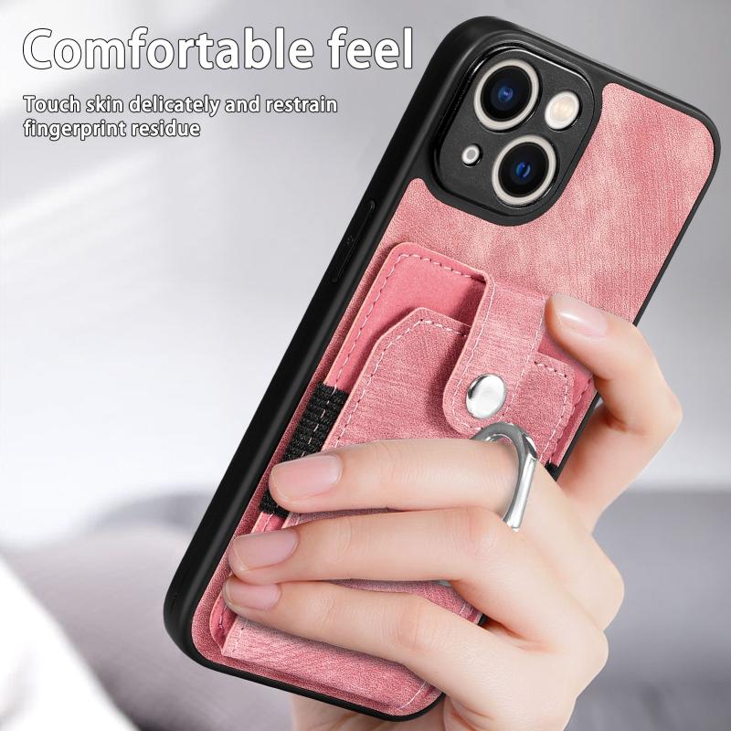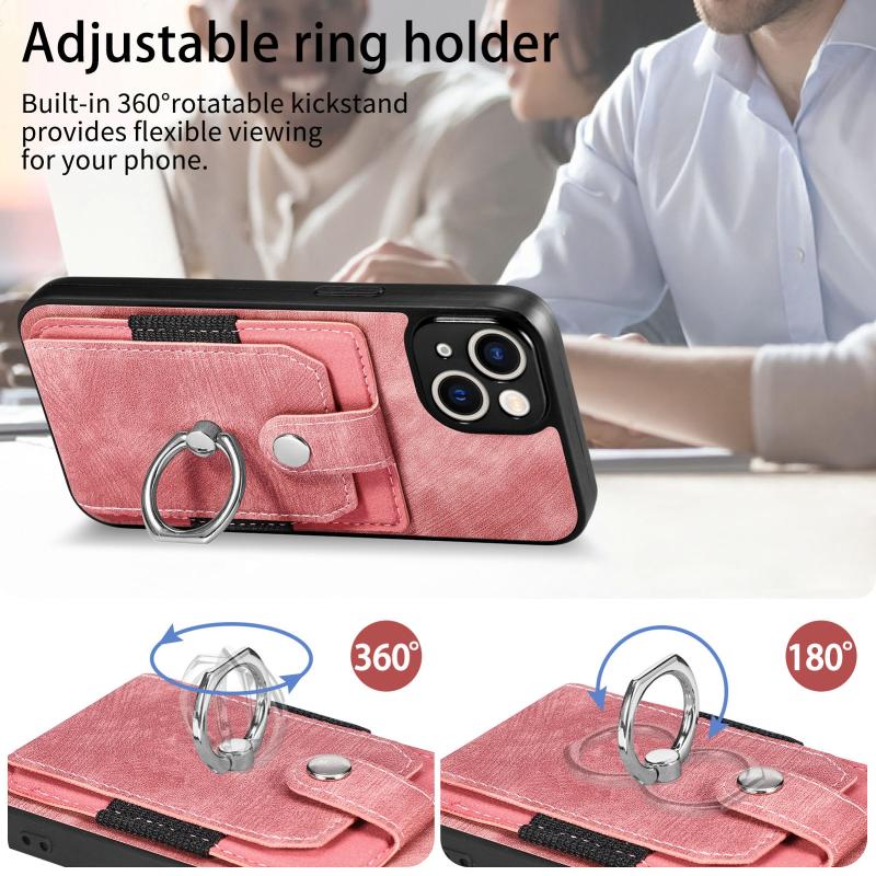 For iPhone 13 Retro Skin-feel Ring Card Wallet Phone Case(Pink)